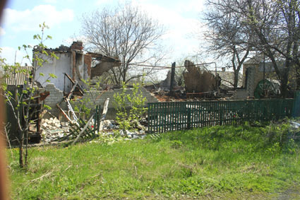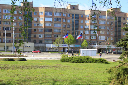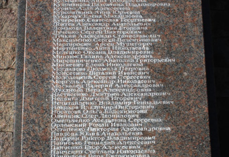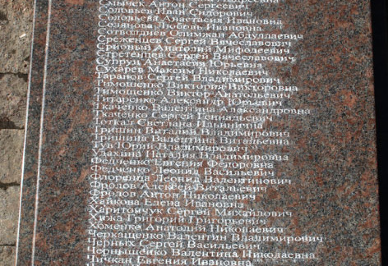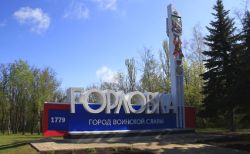 Gedenkstelle in Gorlowka für ermordete Bewohner durch ukrainische Angriffe