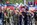 feiern in einer Großkundgebung den Tag der